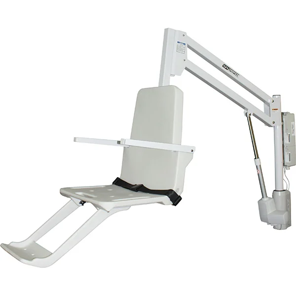 The aXs2 Pool Access Lift with Caddy is a low profile swimming pool lift with a compact footprint and is ideal for community and hospitality swimming pools. It has a 360-degree rotation to ensure sufficient clear deck space for safe transfers and is third-party tested and verified ADA compliant with a 300 pound lifting capacity.