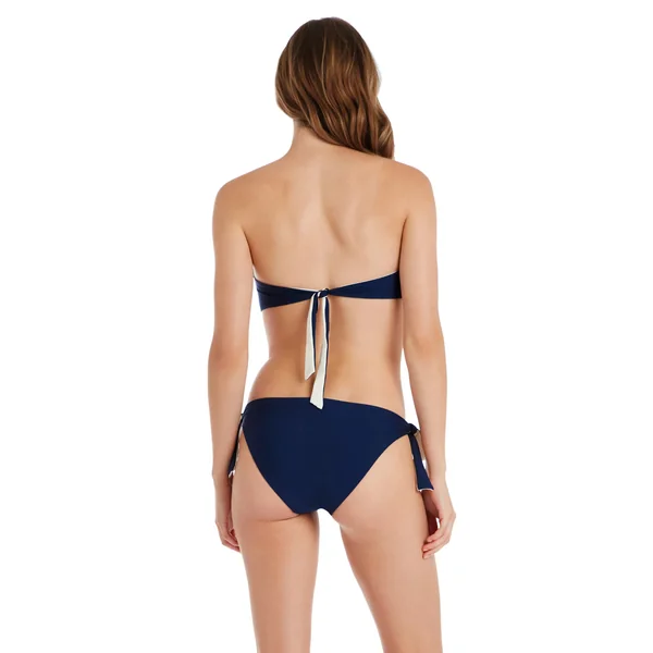 Bandeau bikini top offers removable cups, detachable neck straps and a tie back.