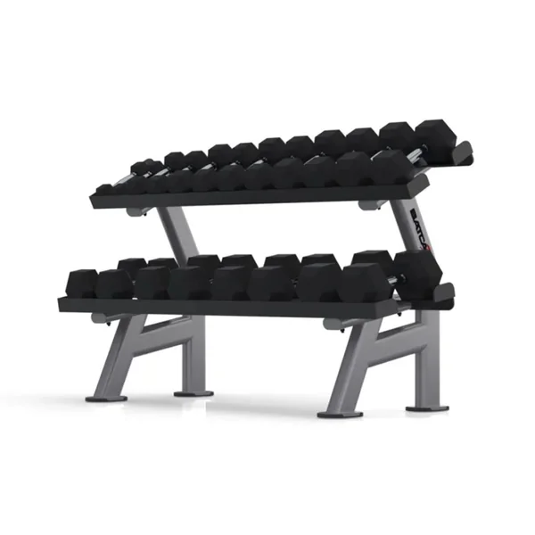 [vc_row][vc_column width=”1/2″][vc_custom_heading text=”FEATURES” font_container=”tag:h2|font_size:45|text_align:left|color:%23441265″ use_theme_fonts=”yes”][vc_column_text]BATCA 2 TIER 5′ DUMBBELL RACK KEY FEATURES:
