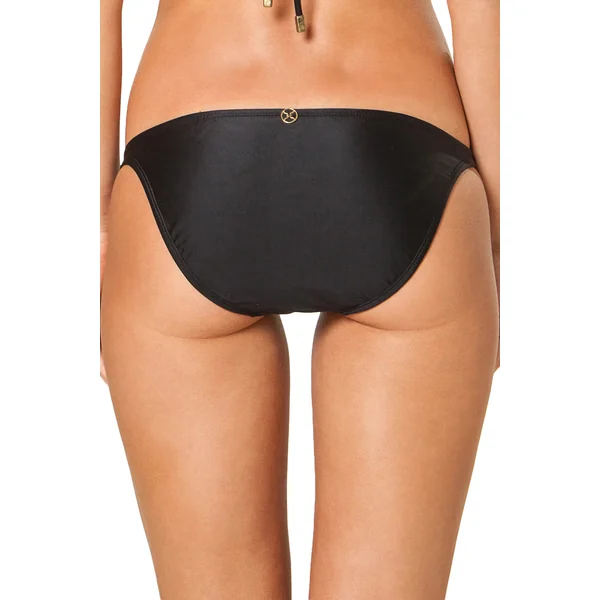 Tab side hipster bottom with beaded detail. Offers moderate coverage.