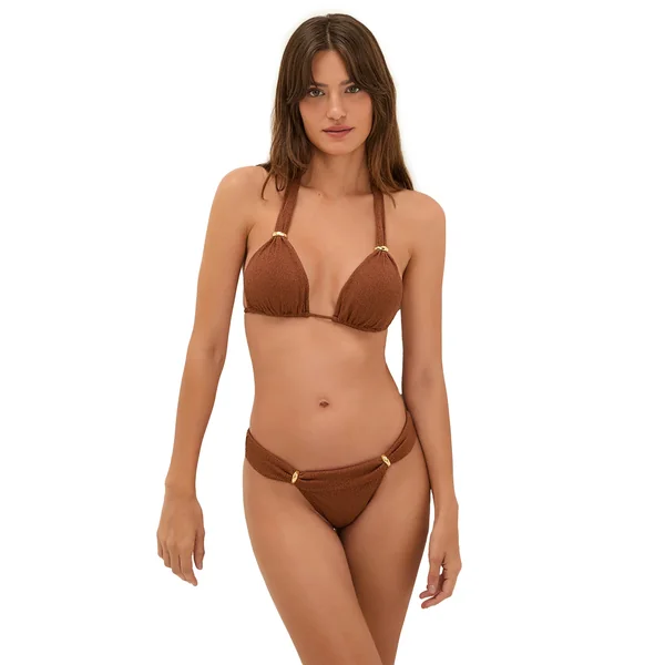 Bia textured halter bikini top features 24k gold-plated adjustable sliders on the straps and offers adjustable neck and back ties.