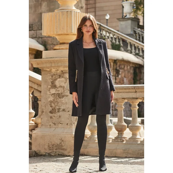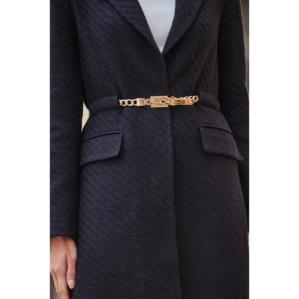 Be the first to review “Black Boucle Coat With Gold Belt Detail”