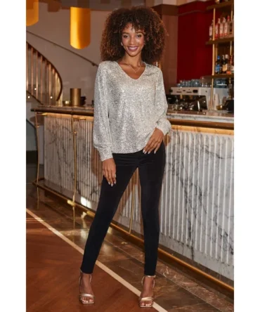Be the first to review “Black Embellished Ruched Front Top”