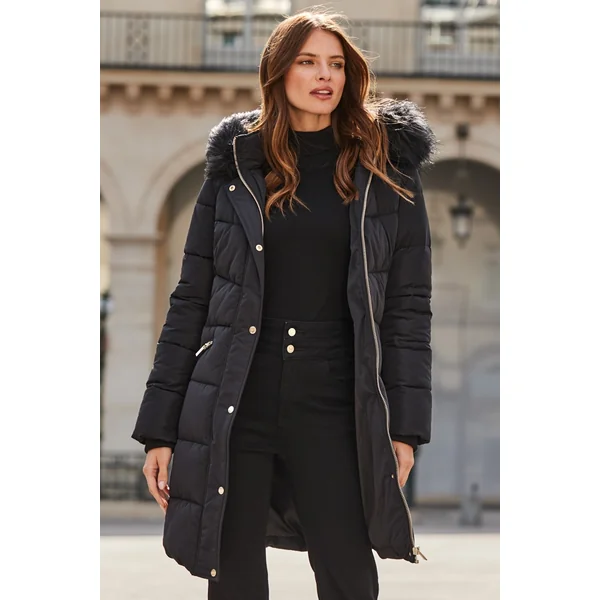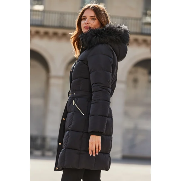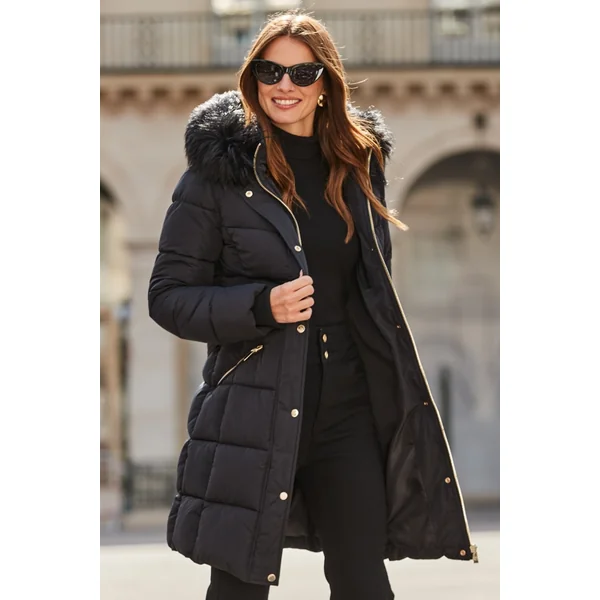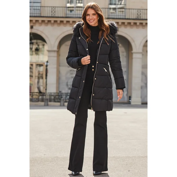 Be the first to review “Black Faux Fur Trim Padded Coat”