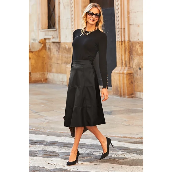 Be the first to review “Black Leather Look Panelled A-Line Midi Skirt”