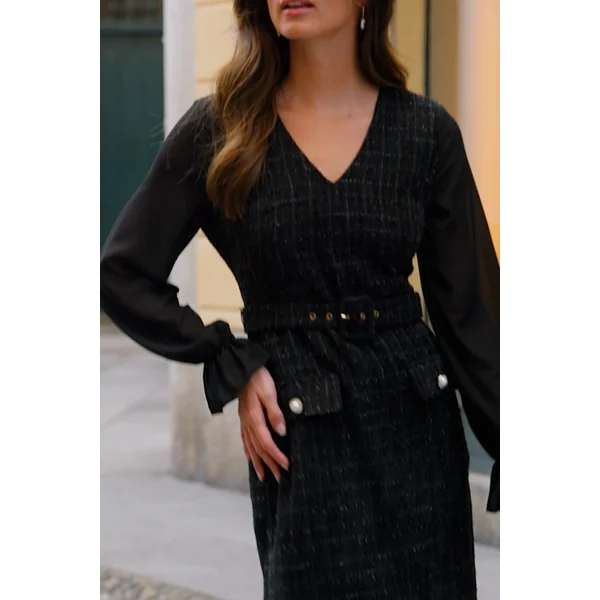 Be the first to review “Black Metallic Boucle Dress With Sheer Sleeves”