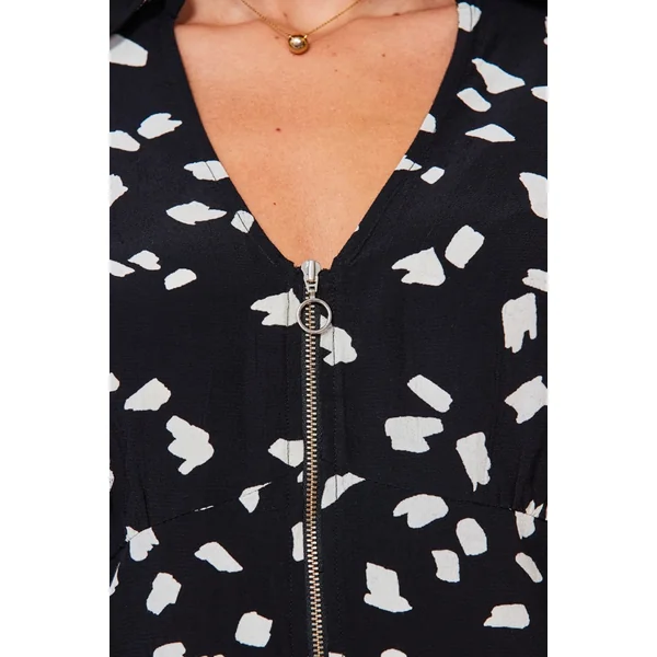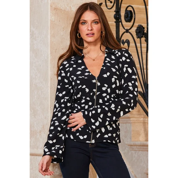 Be the first to review “Black & White Fleck Print Zip Front Top”