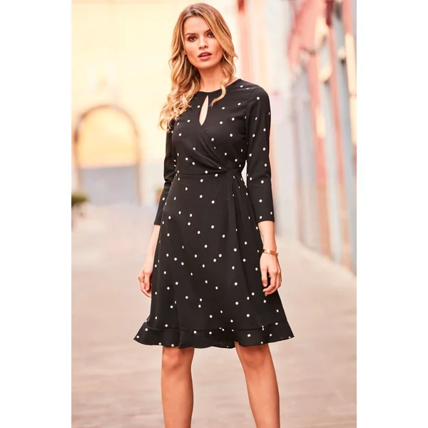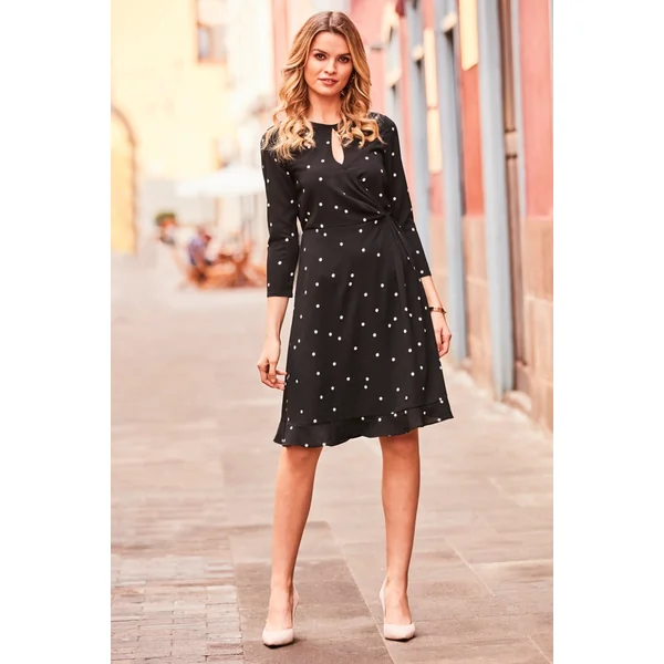 Be the first to review “Black & White Starlight Print Ruffle Hem Dress”