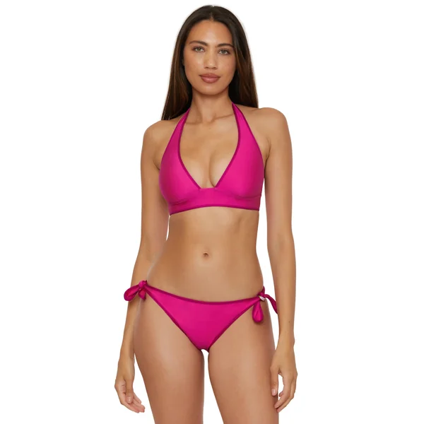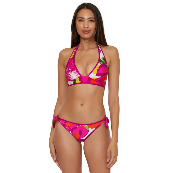 Bikini top features reversible floral to solid print and offers adjustable neck and back ties.