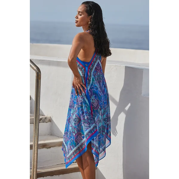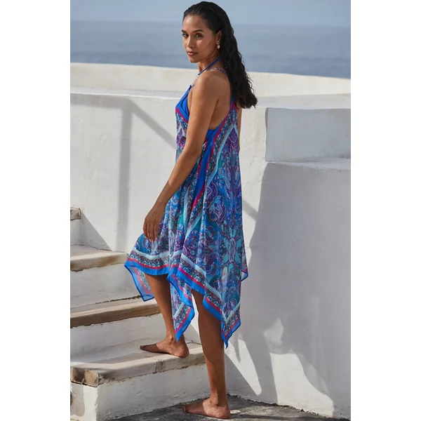 Be the first to review “Blue Scarf Print Hanky Hem Beach Dress”