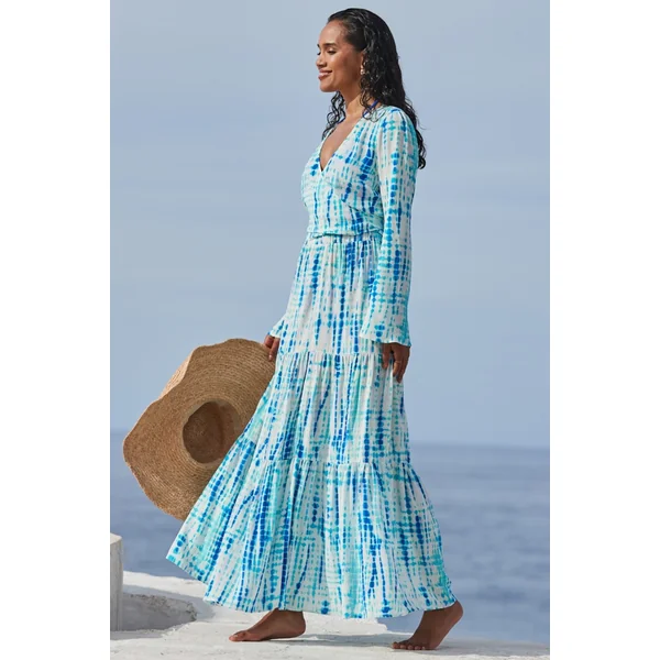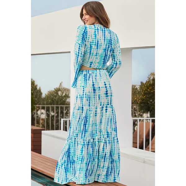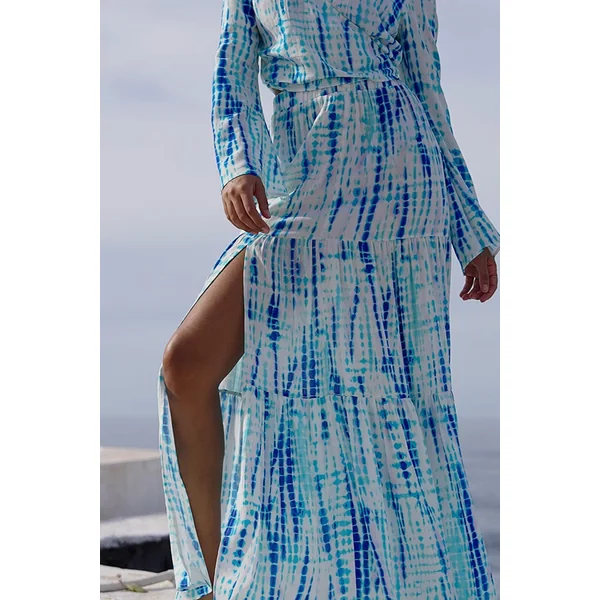 Be the first to review “Blue & White Tie Dye Print Maxi Ruffle Hem Skirt”