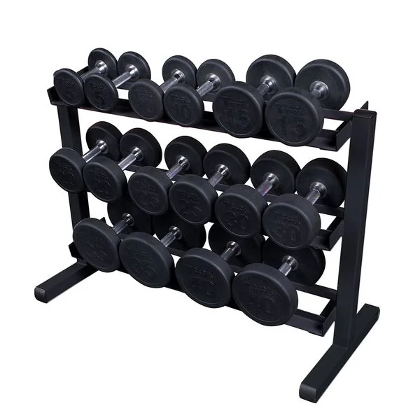 Keep your workout area organized, clean and, most importantly, safe. Our weight trees and dumbbell racks can be placed against any wall or centered in a room. Nobody builds stronger or more space efficient storage units. Heavy gauge steel with all-4-side welded construction is deburred inside and out for user safety. Holds one (1) pair each of 5-50 lb. hex dumbbells.