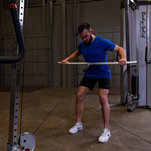 The Body-Solid Tools MB148A Aluminum Lat Bar attaches to any pulley or cable weight machine and is ideal for several lat and upper body focused exercises like lat pulldowns, straight arm pulldowns and more.
