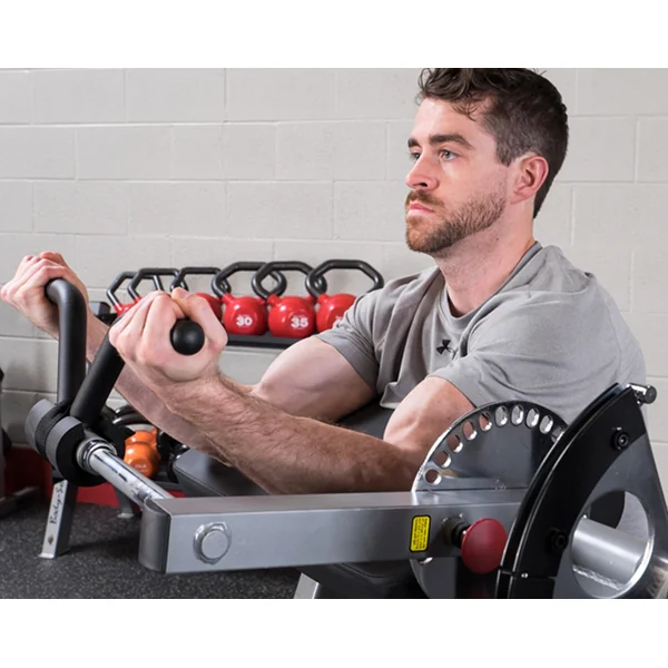- Adjustable lifting arm cam can be positioned upward for triceps workout