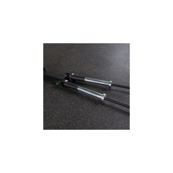 other exercises that are compromised on shorter, competitive power racks.  The 1” hole spacing for the safety spotter bars