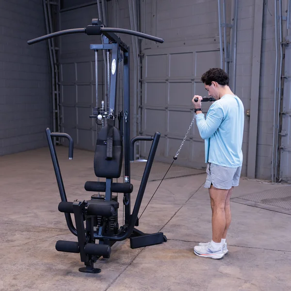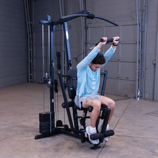 The Body-Solid G1B packs a lot of power, strength and durability into the smallest footprint available. Centered on a 160 lb. selectorized weight stack, this gym allows over 40 toning, trimming and strength training exercises. From the multi-grip press arm to the contoured, adjustable seat pad, the G1B gives you more for your money than any other home gym on the market. Body-Solid G series gyms use the highest manufacturing standards and the finest quality pulleys, cables, and upholstery. The entire gym is backed by the best warranty in the industry, the Body-Solid In-Home Lifetime Warranty that covers everything.