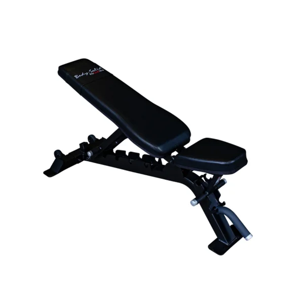- Back pad adjusts flat, incline (15, 30, 45, 60 and 80 degrees) and decline (-18 degrees)