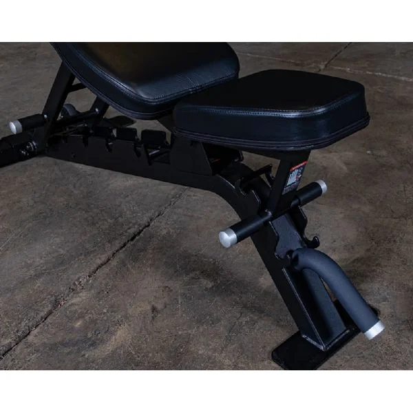 [vc_row][vc_column width=”1/2″][vc_custom_heading text=”FEATURES” font_container=”tag:h2|font_size:45|text_align:left|color:%23441265″ use_theme_fonts=”yes”][vc_column_text]Body-Solid Pro ClubLine Flat Incline Decline Bench | SFID325B Key Features: