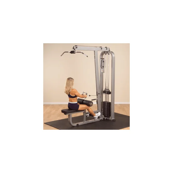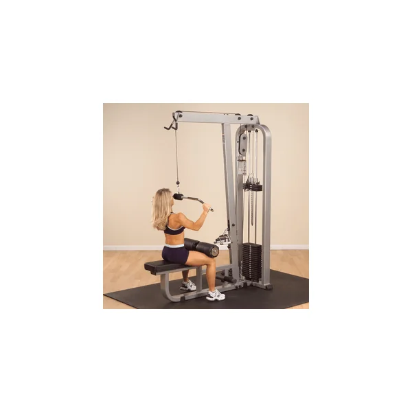 Impressively versatile, the Pro Club Lat Machine is a favorite for gym and club use. Extraordinary capabilities set this machine apart. For starters, you get a high pulley directly overhead for optimum back and shoulder isolation. The extra long pulldown bar allows you to choose wide, medium or narrow handgrip position for maximum development. No-cable-change design allows you to go immediately and directly to a Long Pull / Seated Row exercise movement to further increase size, strength and endurance of your back muscles. Adjustable hold-down pads stabilize you for lifts beyond your body weight. Unique styling, space efficient design, exceptional performance and versatility make this Lat Machine a standout in any gym, club or institution.