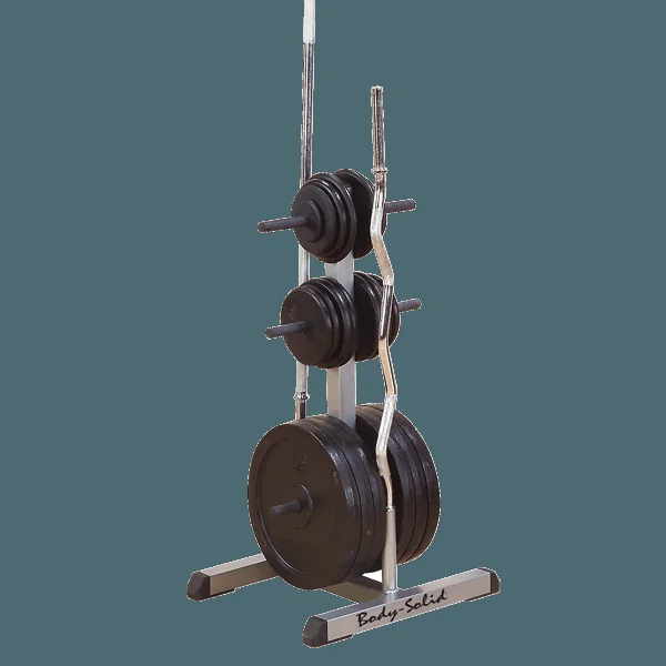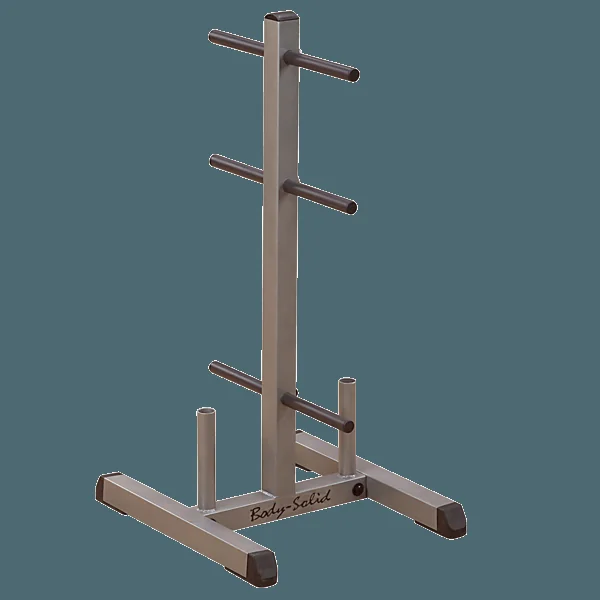 Keep your workout area safe, clean and organized with this Standard Weight Tree & Bar Rack from Body-Solid! Six 1″ x 8″ weight plate storage posts keep plates safely suspended off the floor for easy storage and removal and can hold up to 1,000 lbs. of weight. Two standard bar holders keep bars upright. Designed with central weight load distribution that virtually eliminates the risk of tipping. Features heavy-duty 2″ x 2″ high tensile strength steel with all-4-side welded construction and finished with ultra-tough electrostatically applied powder coat finish. 40″H x 20″L x 23″W