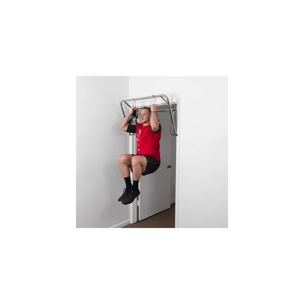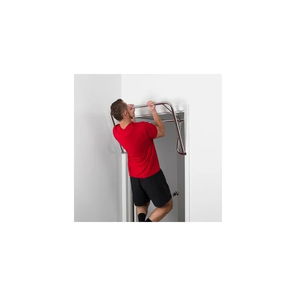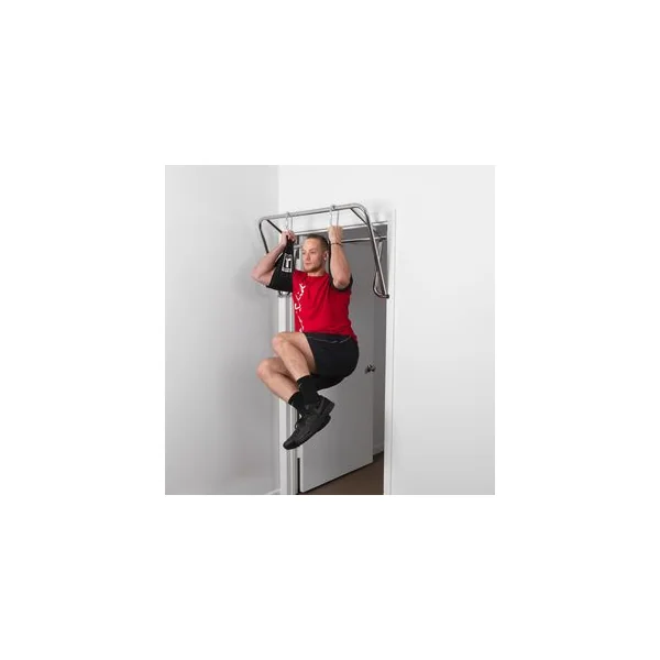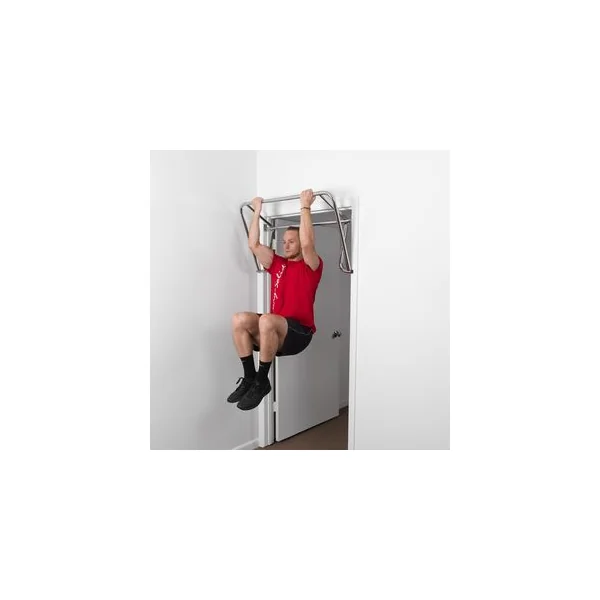 Uniquely designed Pro-Style Doorway Chinning Bar is constructed of heavy gauge reinforced steel. Multi-use design is large and sturdy enough for the big boys. Quickly and easily mounts to doorway frame. Infinitely adjustable from 29″ to 38″ in width and extends a full 10″ out and away from doorway frame for head clearance when doing full-range pull-ups. Convenient lift-out design for easy storage. Includes mounting hardware. Capacity: 300 lbs.