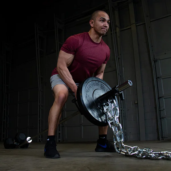 - Attach to kettlebells, dumbbells and sleds or for bodyweight use