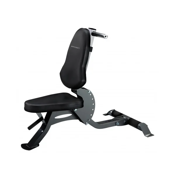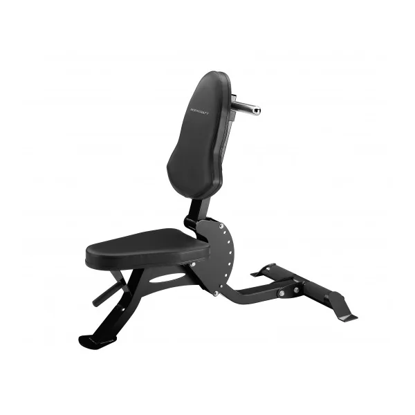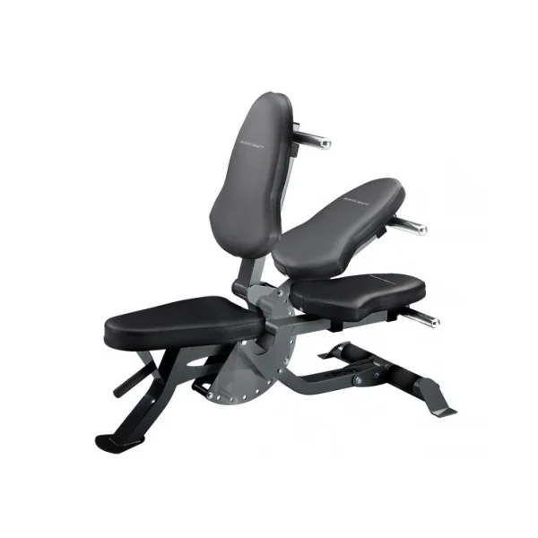 - Back pad: slides along frame to close the gap and find your perfect fit. 8 different adjustment points. Back pad doubles as a knee hold down for lat pulls.