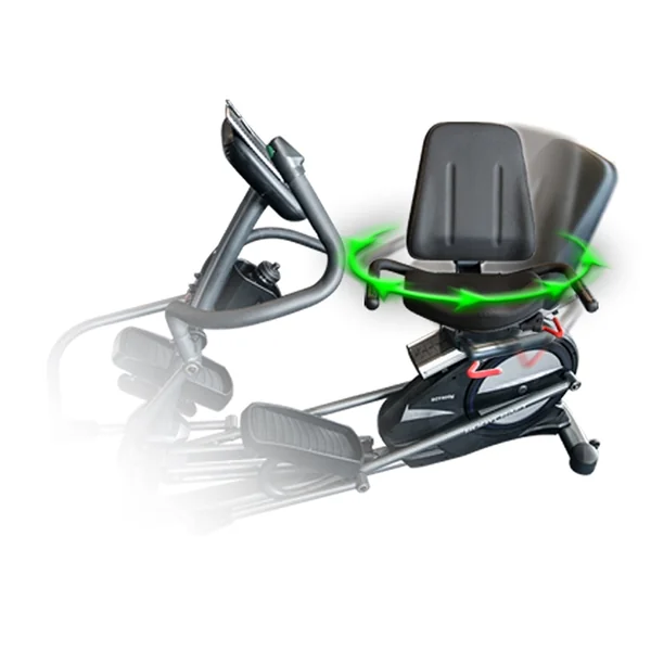 The SCT400G Seated Elliptical Cross Trainer delivers a low impact lower and upper body workout and comfort with its adjustable Ultra Wide Seat and Lumbar Backrest. Our padded pedals coupled with our patented SST (Spring Step Technology) allow the users foot to self align with their own natural foot angle minimizing foot and knee stress. Get on and off the SCT400g easily and safely with its walk-through design and swivel seat. The GO button and handlebar controls get you up and running instantly.