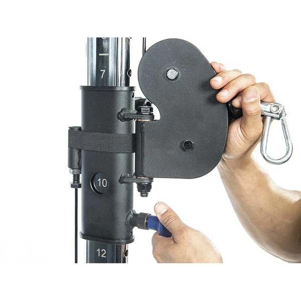 - Dual Front Adjustable Pulleys: Swiveling Functional Pulleys W/32 Height Positions and Laser Cut Position Window
