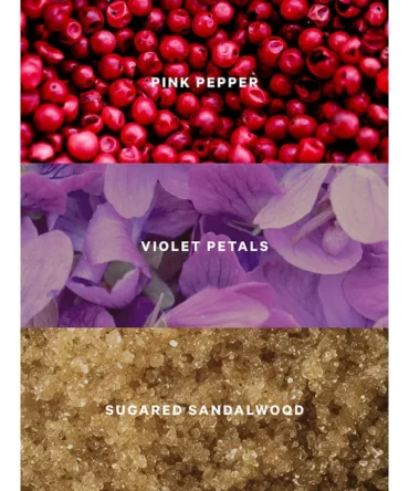 - Notes: purple passion fruit, Shangri-La peony, vanilla orchid