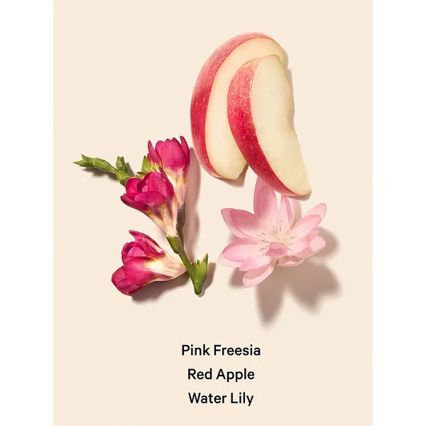 • Notes: pink freesia, red apple, water lily