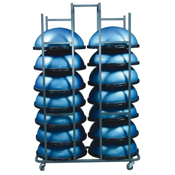 [vc_row][vc_column width=”1/2″][vc_custom_heading text=”FEATURES” font_container=”tag:h2|font_size:45|text_align:left|color:%23441265″ use_theme_fonts=”yes”][vc_column_text]Store and easily transport up to 14 fully inflated BOSU® Balance Trainers while conserving valuable floor space at health, fitness and sports conditioning facilities. The BOSU® Storage Cart is constructed of durable steel, has casters for ease in moving it around, and fits through a standard doorway.