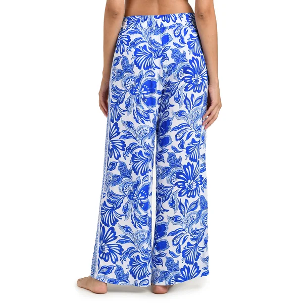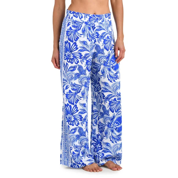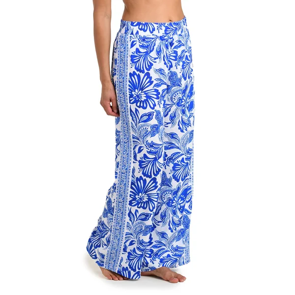 Beach pants feature a wide-leg design and an elastic waistband.