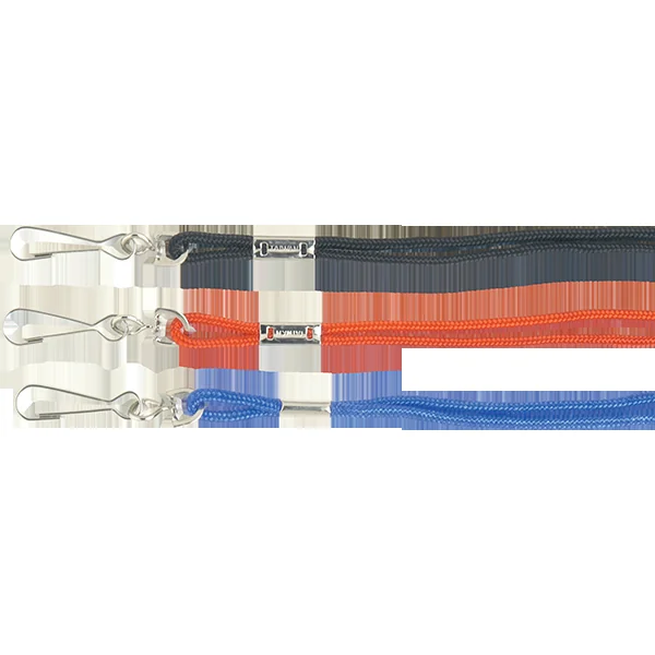These whistle lanyards are made of a sturdy nylon braid with a metal clasp to attach any whistle. Available in blue, black and red. Length: 19″; Weight: 2 oz.