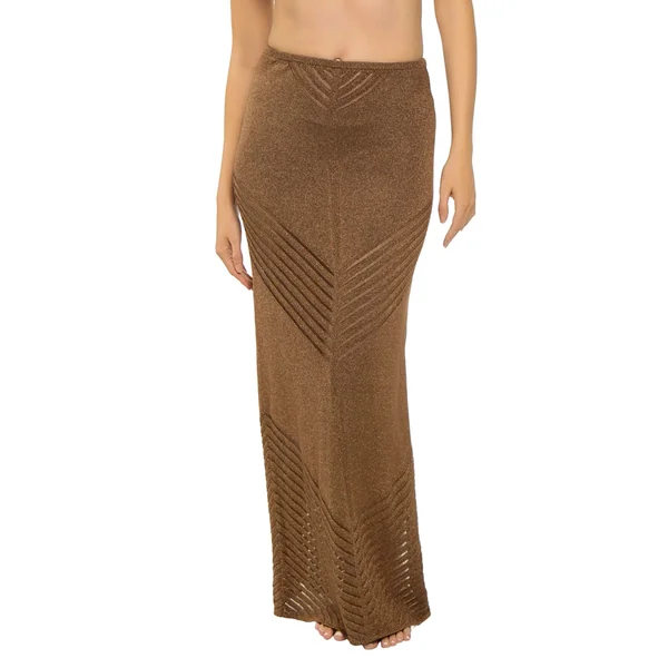 Maxi skirt features metallic knit fabric with chevron pattern and a side slit.