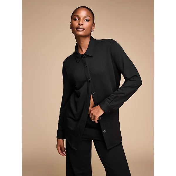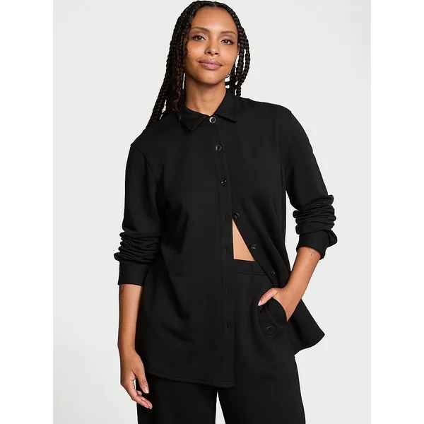 We elevated your favorite basics to a new level of cozy comfort with a cloud-soft modal blend that’s as ready for takeoff as it is for your days off. This perfectly oversized button-front layers over everything for a casual-cool vibe.