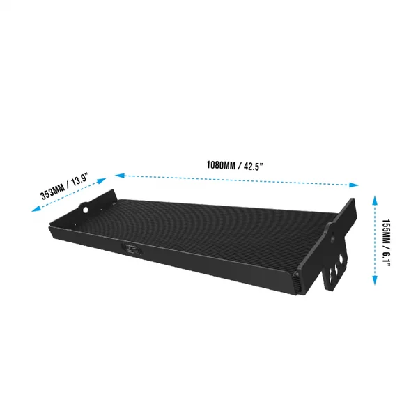 – 43″ length x 14″ depth usable storage area
