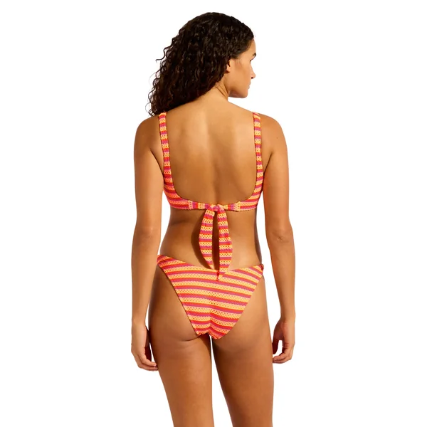 Swimwear, especially in bright or saturated colors, may release a small amount of dye when new. Rinse your suit in cold water prior to first wear to remove any excess dye — this is a normal occurrence and not a manufacturing defect. With proper care, swimsuits will look beautiful for years. Always hand wash in cold water with a gentle cleaner, never machine wash or dry. Rinse immediately after wear to remove saltwater and chlorine, and avoid extended time in hot tubs or heavily chlorinated pools.