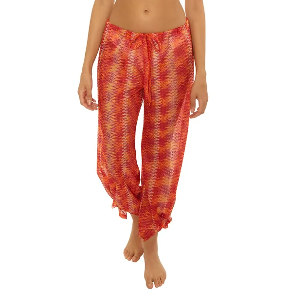 Pants can be worn as a wide leg or harem pant with ties at hem.