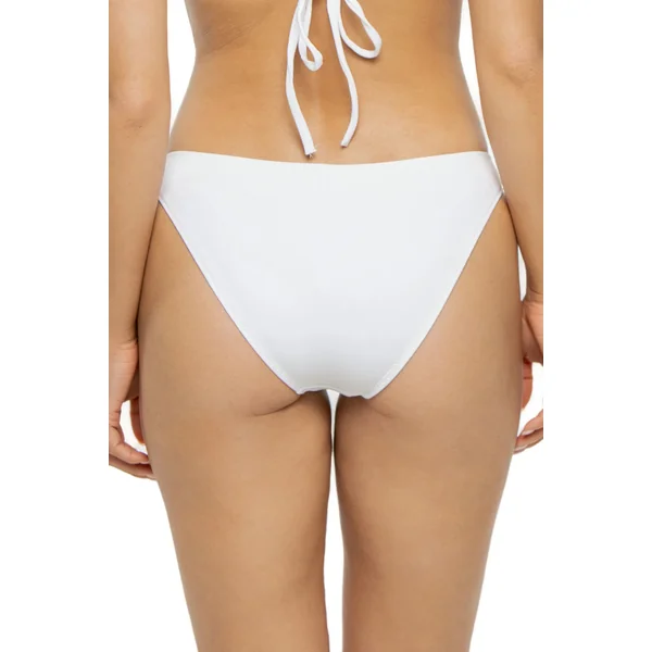 Caracas bikini bottom features golden ring hardware at hip and offers moderate coverage.