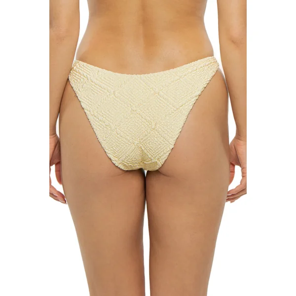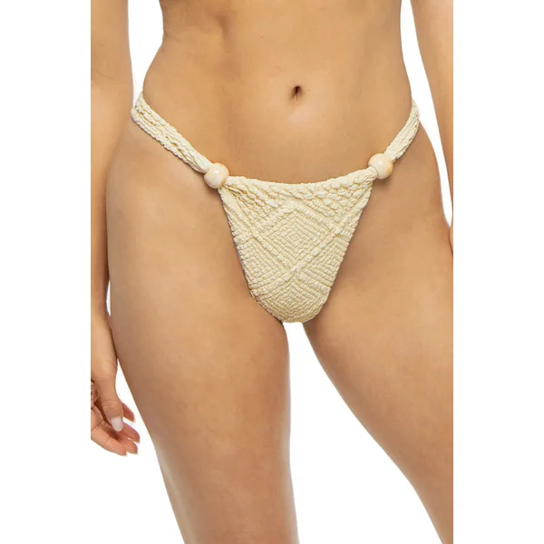 Carla hipster bikini bottom features textured fabric, beaded sides and offers moderate coverage.
