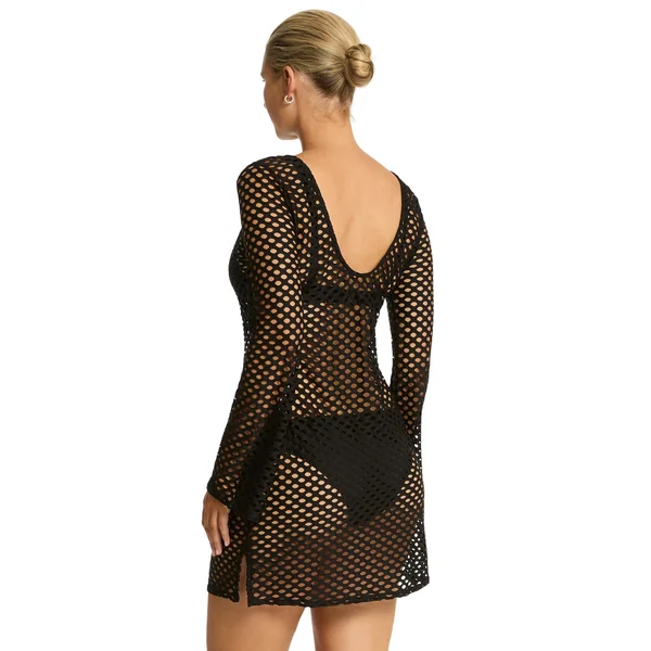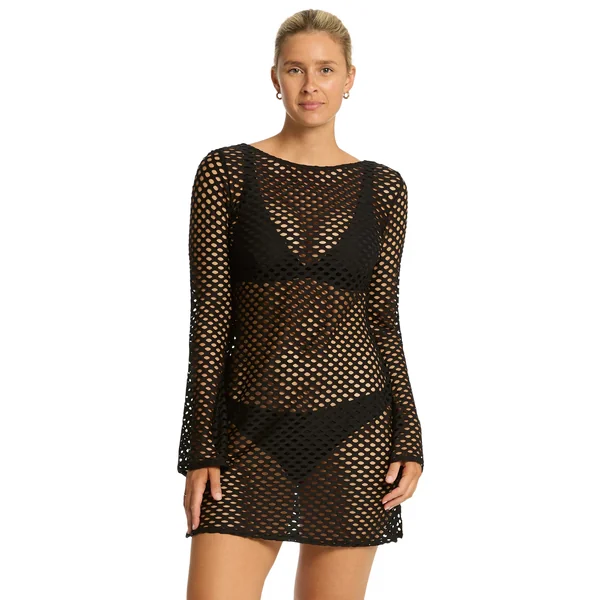 Cover dress features soft eyelet mesh fabric and is reversible, the scoop neckline can be worn front or back.