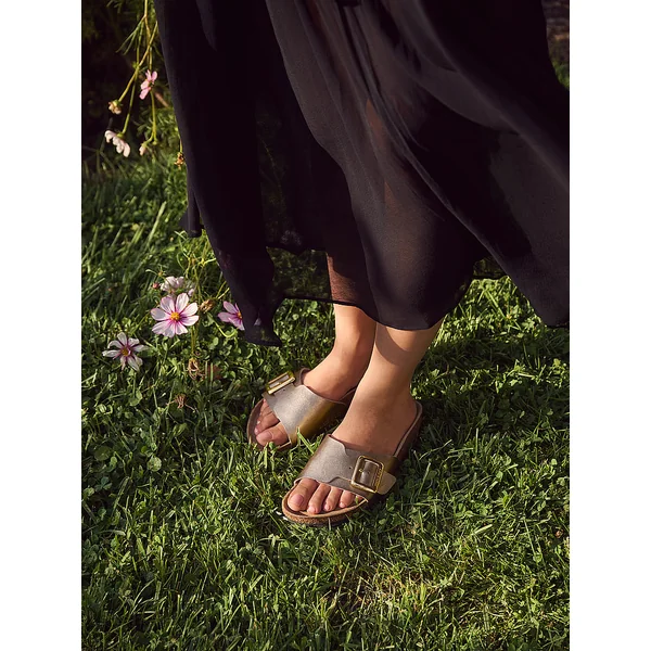 The Catalina sandal in embossed, shimmery Birko-Flor® with a shiny Luxe Buckle and eyecatching texture. Designed around our original contoured footbed for support, this one is ready to chase the sun when you are.