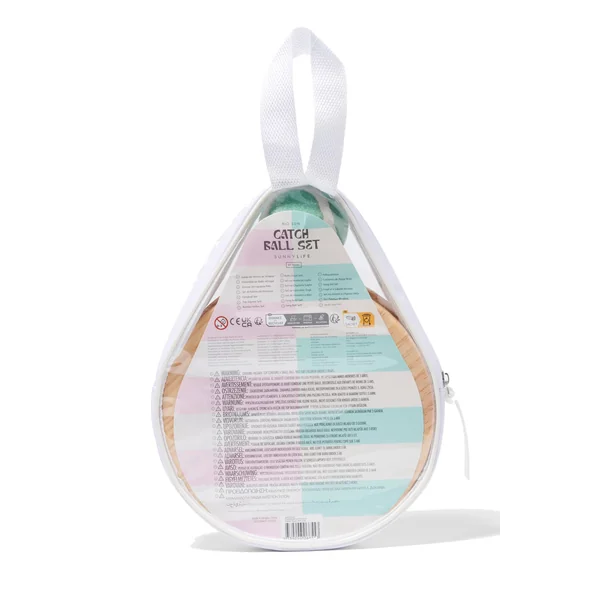 Catch ball set comes with two velcro wooden mitts with adjustable elastic strap for a firm and comfortable grip and one branded SUNNYLiFE ball, and a handy carry bag.