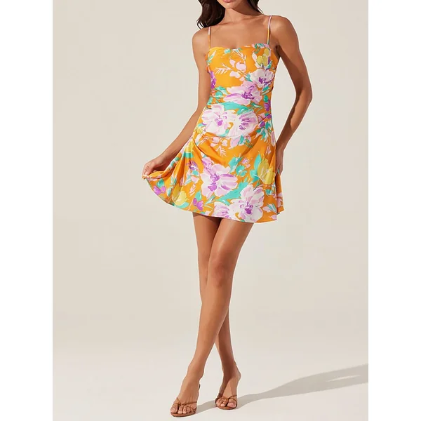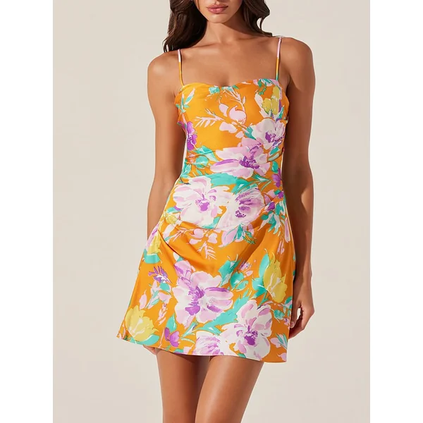 Rendered in soft satin, this fun mini Dress has adjustable straps, ruched sides, and plenty of statement-making flair.