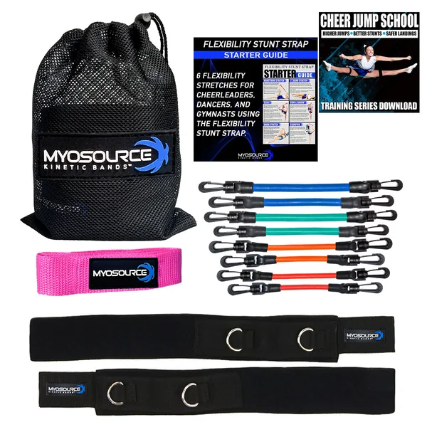 Watch or download this cheerleading training series to your computer, iPad or smartphone. Learn how to use the Kinetic Bands and Stunt & Flexibility Strap to improve your skills and athletic performance. See your order or shipping confirmation emails or the brochure included with your order for information on how to access this valuable training series. The Cheer Jump School training downloads include: How To Put On The Kinetic Bands, Dynamic Warm-up, Range of Motion, Strength, Plyometrics (Jump Training), Abdominals, Stunt Specific, and Post Stretch.