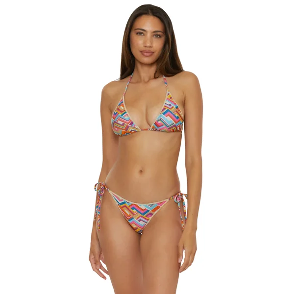 Cheryl bikini top features metallic chevron print, removable soft cups, adjustable neck and back ties.