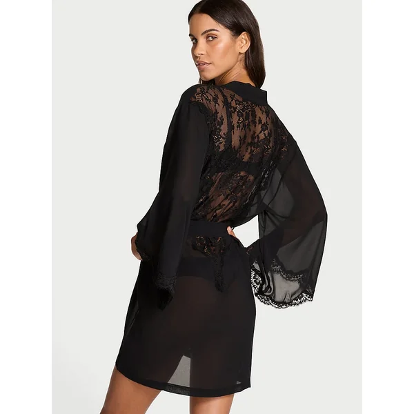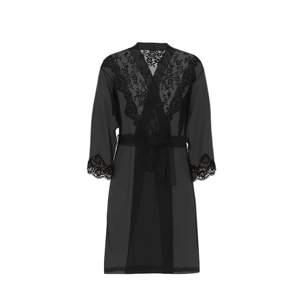 Created from semi-sheer chiffon and romantic lace for a tantalizing glimpse beneath, this sultry Robe takes its cues from glamorous vintage pieces. Pair with your favorite Lingerie or showcase it all on its own.