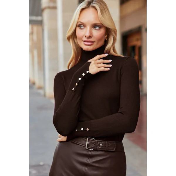 Be the first to review “Chocolate Brown Roll Neck Button Cuff Jumper”