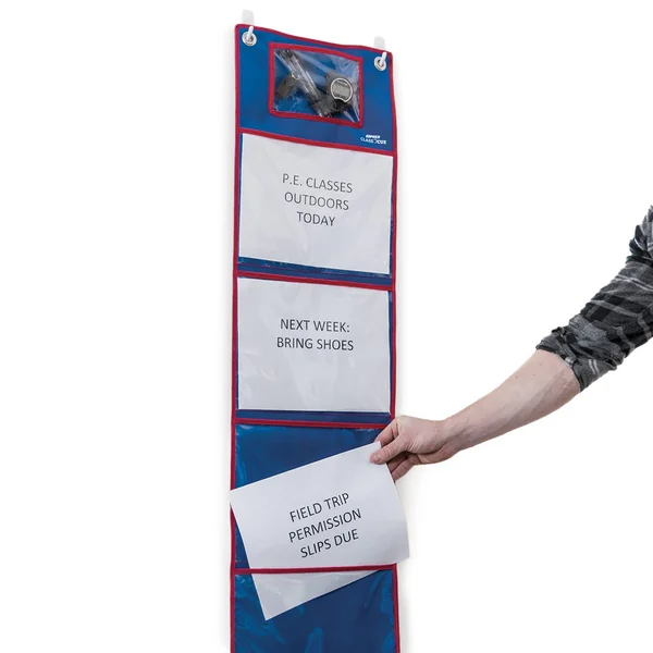 Hang this sign holder in the classroom for announcements or use it in the gym at circuit stations. Teachers simply place a piece of paper in one of the clear plastic holders to keep students informed.